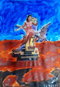 Приведу пример метафорического изображения войны. Например, вот арт-реплика из галереи «Ист Сайд», на работу Пабло Пикассо о бомбардировке баскского города Герника (1937). Работа передает ужас войны и негуманное отношение человека к себе подобным, даже не используя буквальные изображения батальных сцен. То же самое можно наблюдать и в работах украинских военных.