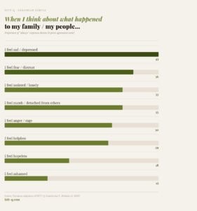 Moral trauma: 145 out of 299 feel that someone has acted unjustly toward their family or people. This is the highest score on the scale.