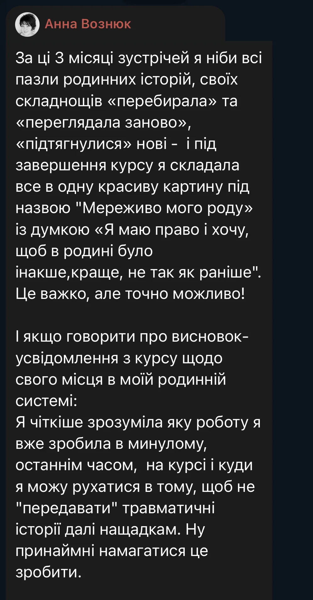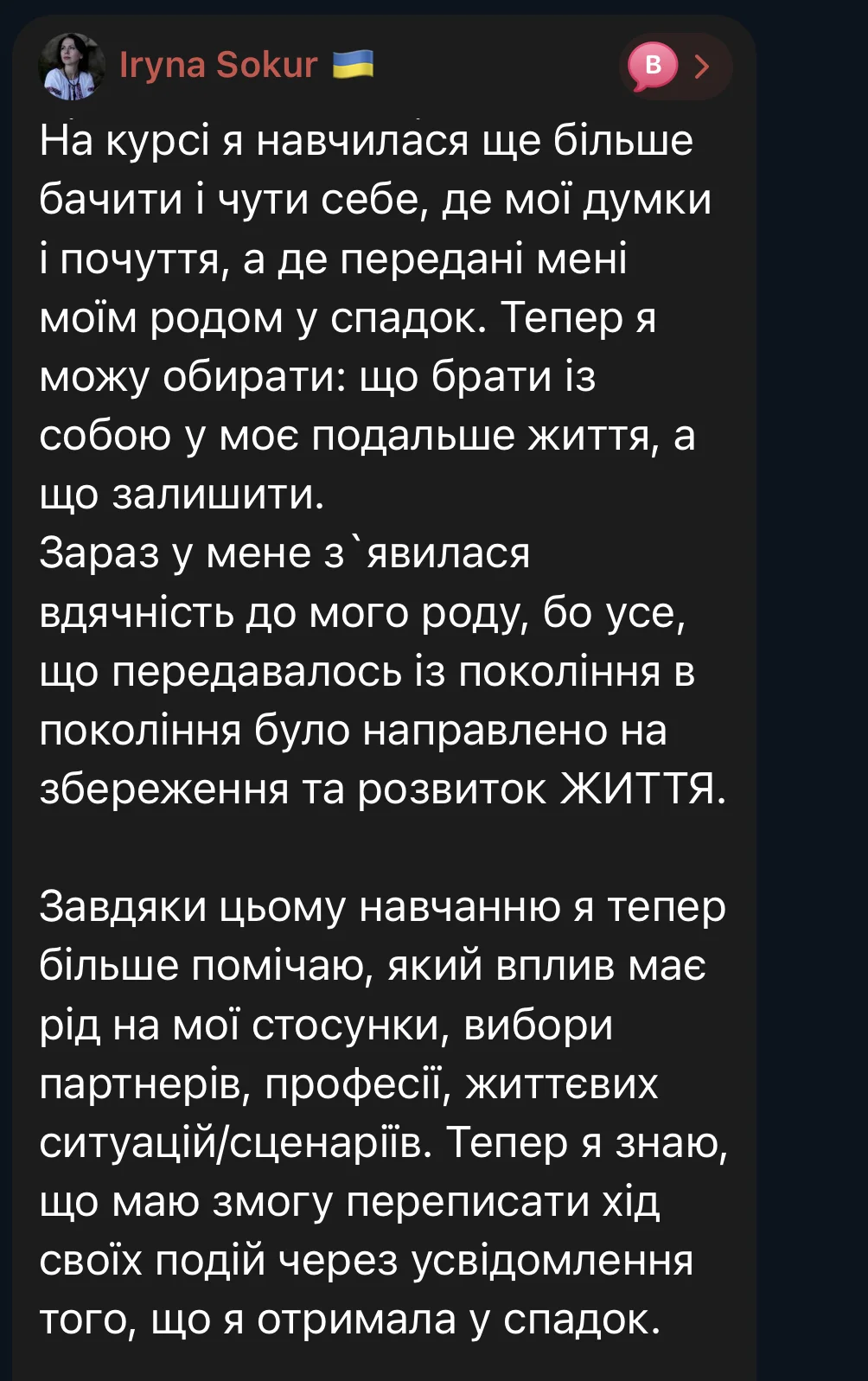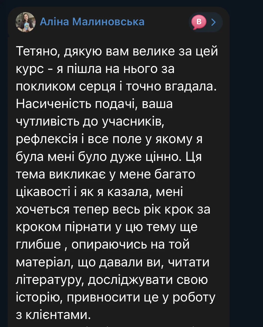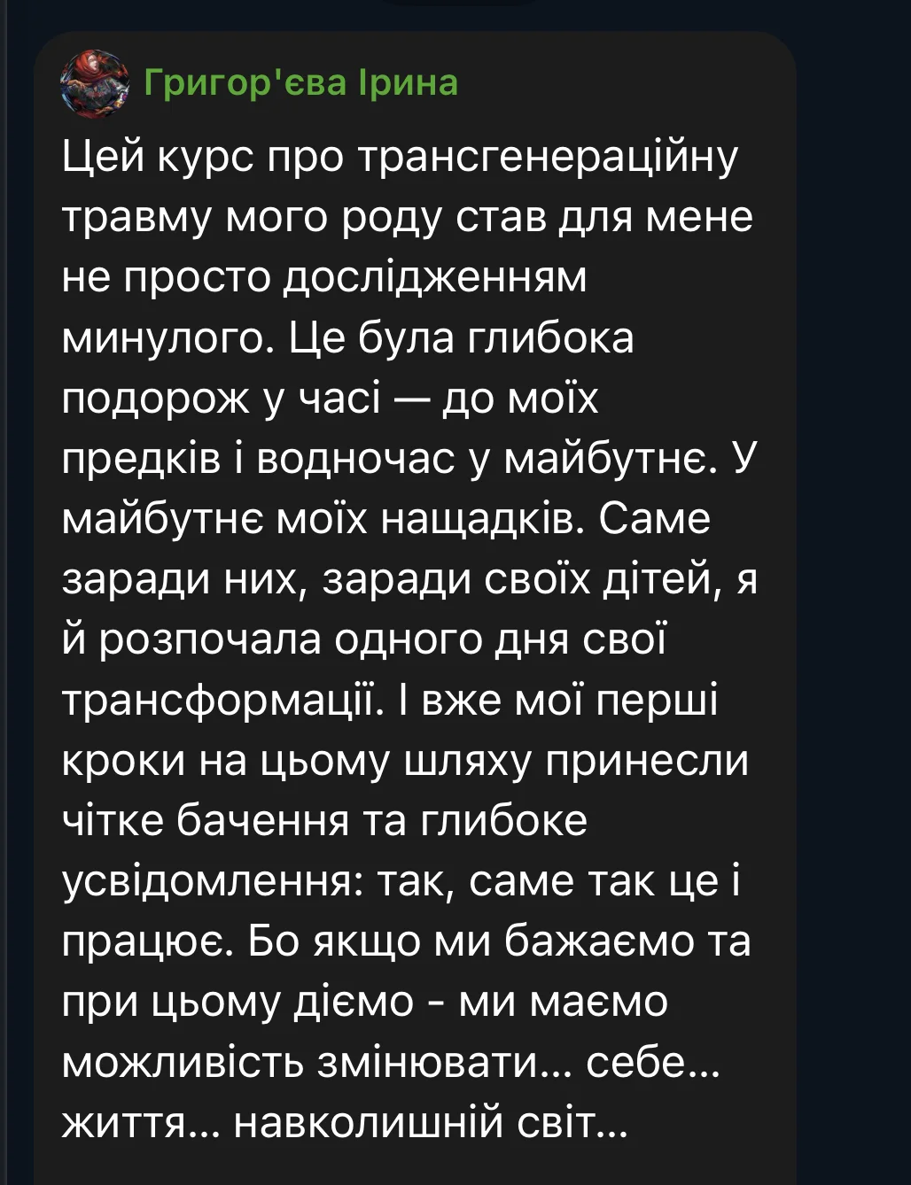 Here are some reviews from participants in the first session of the course (October 3 – December 19, 2025). The course took place amid the realities of full-scale war: rocket attacks and bombings of Ukrainian cities, total blackouts, and cuts to heat, water, and communications. Despite this, we were able to complete the entire course from the first to the last meeting, without any cancellations or postponements.