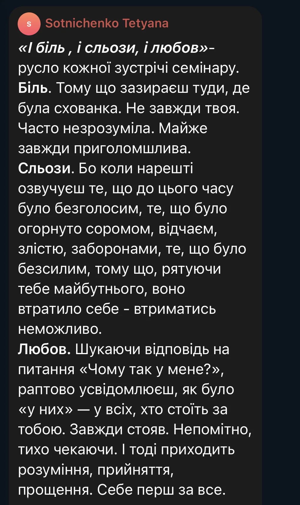 More working notes from the first stream of the course can be found on the Telegram channel “Psychological Trauma of War” (ua)