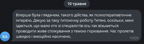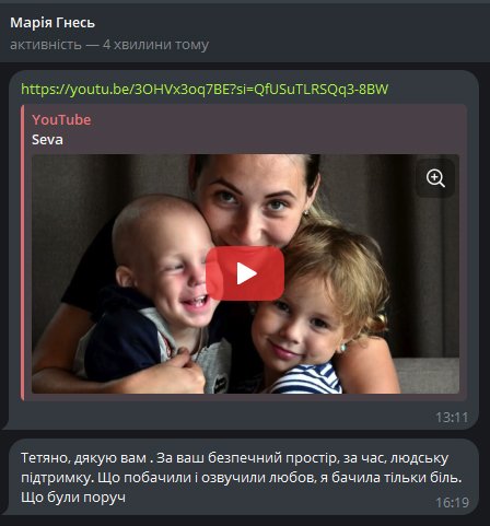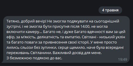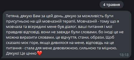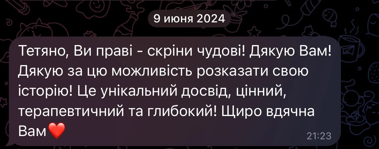 Цей досвід є терапевтичним і для того, хто ділиться власним досвідом. І для того, хто є свідком процесу.