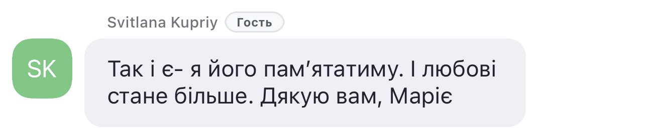 Коли слухаєш та бачиш те, що подібно до твого – воно стає меншим. Адже розділене горе – це горе, поділене навпіл.