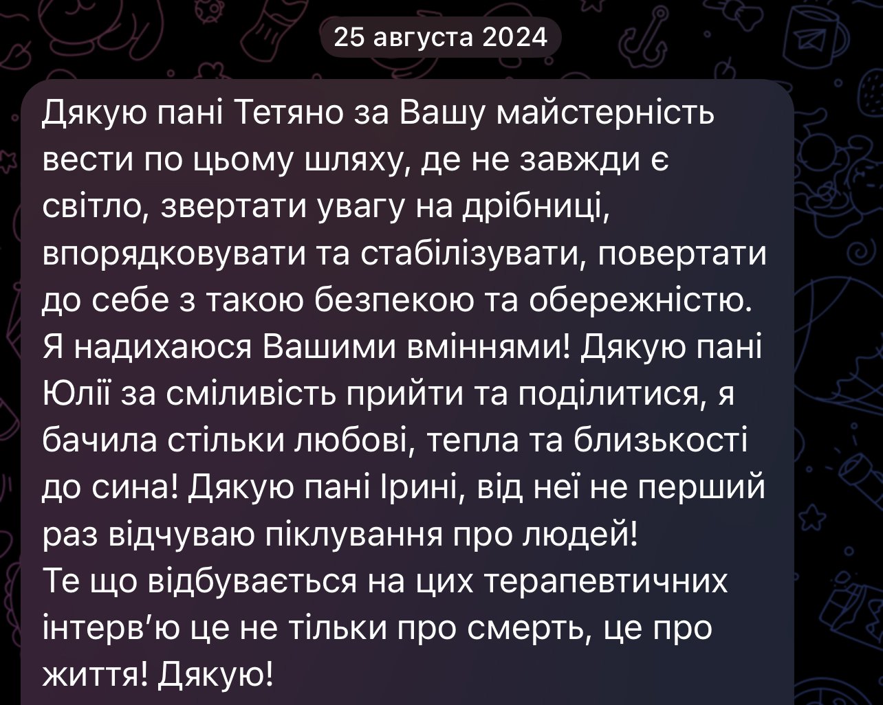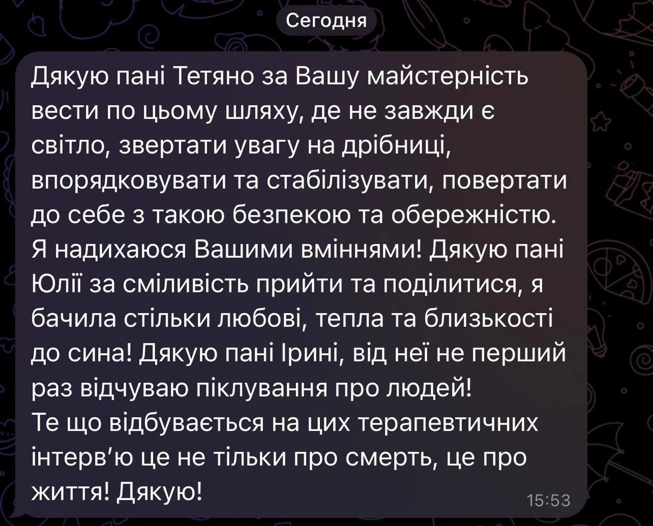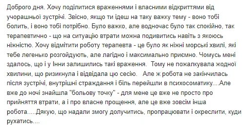 Відгуки з різних психотерапевтичних інтерв’ю, що передають атмосферу заходу