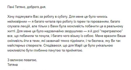 Також є 2-хгодинний блок з рекомендаціями щодо проживання горя. Протягом всього часу спілкування є можливість задавати питання.