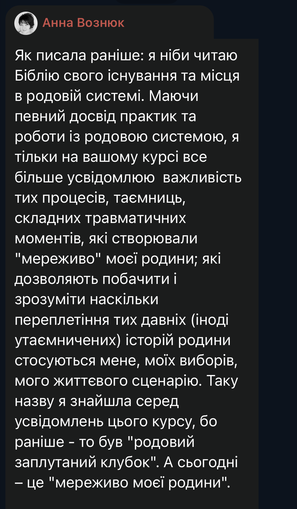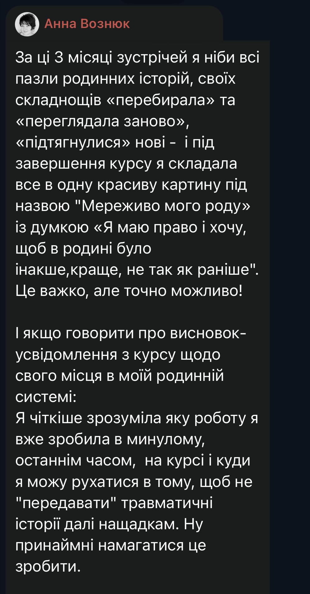 Коли досліджуєш механізми передачі травм в межах власної родини – стає зрозуміло: це не «зі мною щось не так», а патерн, який ти не обирав, але який можна переписати дорослими рішеннями.